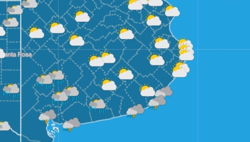 Los vientos sentido noroeste escalarán hasta los 26 kilómetros por hora y las lluvias harán bajar la sensación térmica hasta los 16°. Se espera que las tormentas se prolonguen hasta el fin de semana con una acumulación que alcanzará los 24 milímetros.