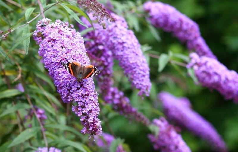 La budleya (Buddleja davidii), también conocida como arbusto de las mariposas o lilo de verano, recibe su nombre popular por una razón muy específica: cuando florece, las mariposas se posan en tal cantidad que literalmente pueden ocultar las flores. Sus racimos de flores dulces y perfumadas, en tonos que van del blanco al violeta, azul y rosa, son irresistibles para estos insectos.