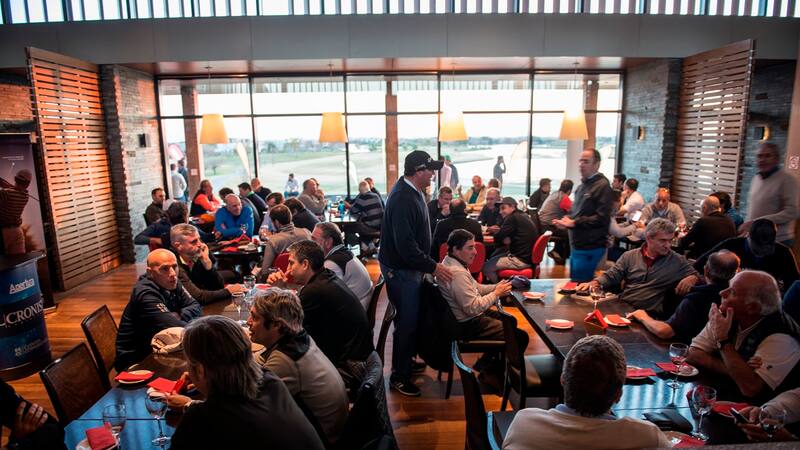 De a poco, el salón se fue llenando y el bullicio comenzó a aumentar. Charlas de coyuntura económica y política, negocios y sobre todo risas fueron apoderándose del Club House. En el segmento deportivo, la noticia más comentada llegó desde Europa: el día anterior, Boca había perdido en un amistoso frente al Barcelona de España por tres a cero y las chicanas y referencias a la dura derrota del xeneize no se hicieron esperar: “Messi no los perdonó, ¿eh? .