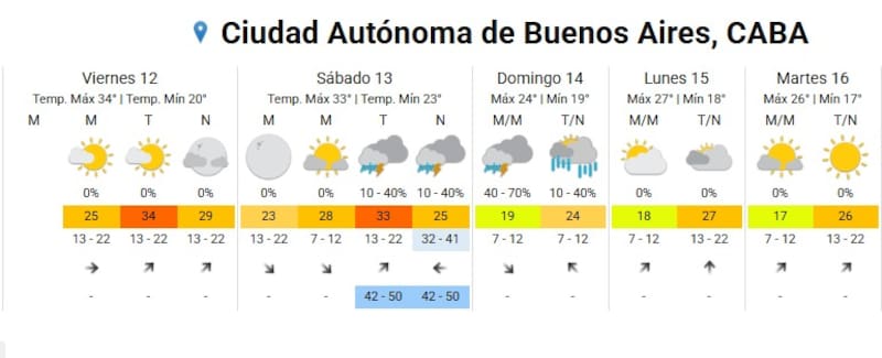 - Sábado 13: mañana con 23° y tarde y noche con tormentas