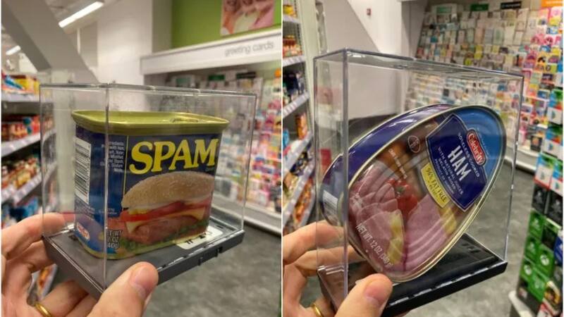 En contexto, se viralizó un tuit que decía: "El régimen de prevención de pérdidas completamente renovado en Duane Reade, de Port Authority, finalmente ha creado algo hermoso, una especie de homenaje a Jeff Koons" y mostraba una lata de la famosa carne Spam dentro de una caja de plástico para evitar el robo. El usuario sumó una fotografía de una lata de jamón también empaquetada.