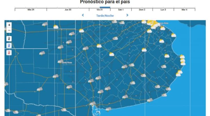 En ese sentido, podrían presentarse chaparrones o tormentas aisladas en sectores como el Litoral y la provincia de Buenos Aires. Durante el domingo, se esperan temperaturas más primaverales de hasta 25° C de máxima y mínimas de 9° C.
