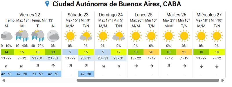 Una vez terminadas la tormenta del viernes, el pronóstico del tiempo señala que en CABA el fin de semana tendrá una temperatura mínima de 5° y una máxima de 17°. El cielo estará despejado sin lluvias.