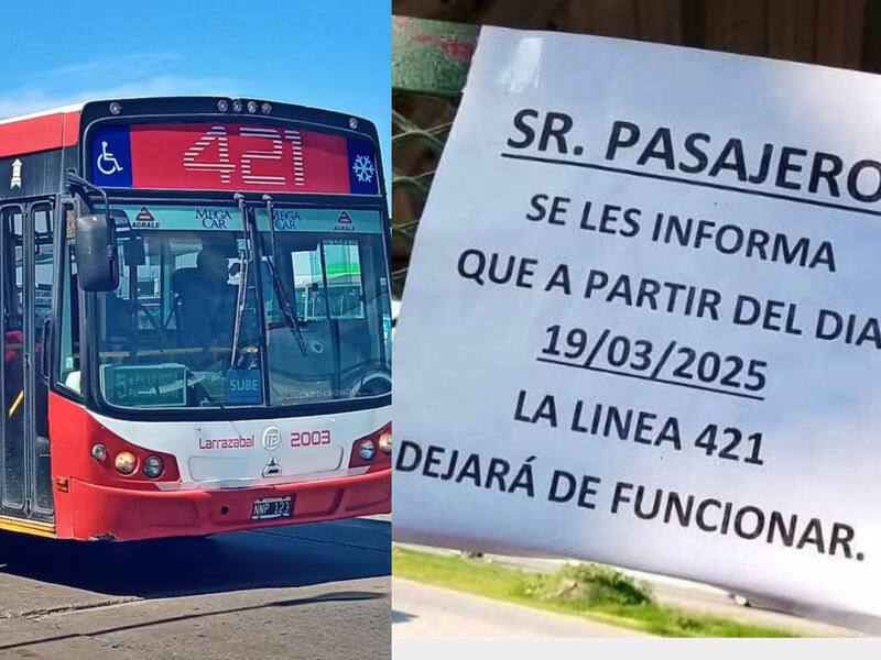 "Señores pasajeros: se les informa que a partir del día 19/03/2025 la Línea 421 dejará de funcionar", advirtieron en cada mensaje que colocaron durante la tarde del miércoles. Así como los pasajeros, los mismos choferes también conocieron la noticia en el momento.