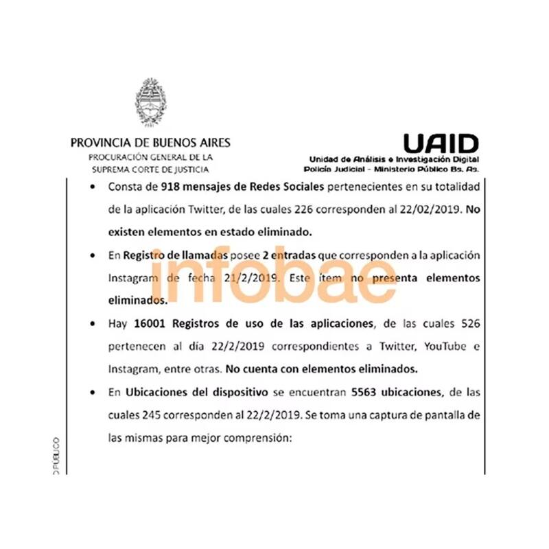 Las pericias realizadas por la Unidad de Análisis de Investigación Digital de la Policía Judicial de la Procuración Bonaerense hallaron dos cuentas de Gmail y una de Hotmail, dos usuarios de Instagram y otros dos de Twitter.