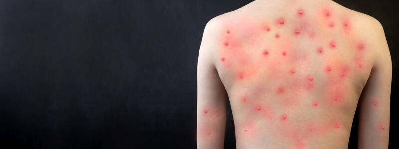 Los síntomas más frecuentes son fiebre, dolor de cabeza, muscular o de espalda, inflamación de ganglios y cansancio. Entre uno y cinco días posteriores se agrega erupción en la piel, que pasa por distintos estadios hasta formar una costra que luego se cae.