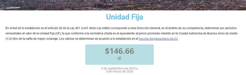 "Determínase que el nuevo valor comenzará a regir desde el día 4 de septiembre de 2023 hasta el 3° de marzo de 2024, ambas fechas inclusive y que en lo sucesivo el valor de la Unidad Fija se establecerá de acuerdo a lo informado por la Dirección General de Estadística y Censos dependiente de la Agencia Gubernamental de Ingresos Públicos bajo la órbita del Ministerio de Hacienda y Finanzas, o el organismo que en su futuro lo reemplace", detalla el artículo 3° de la normativa porteña.