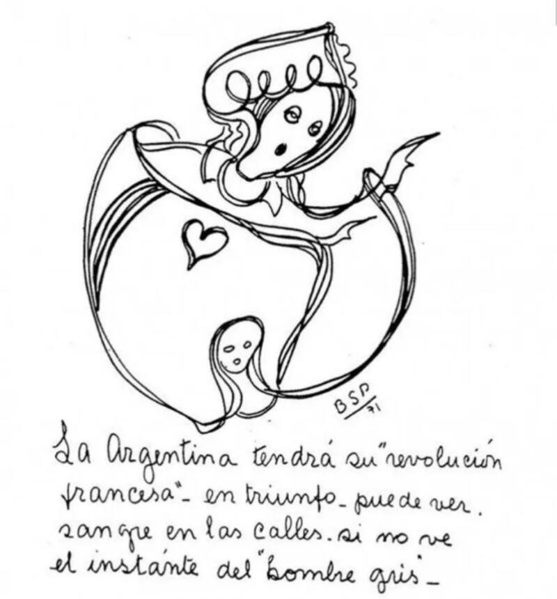 En 1941, Parravicini compartió un dibujo que decía "La Argentina tendrá su Revolución Francesa, en triunfo, puede ver sangre en las calles si no ve el instante del hombre gris".