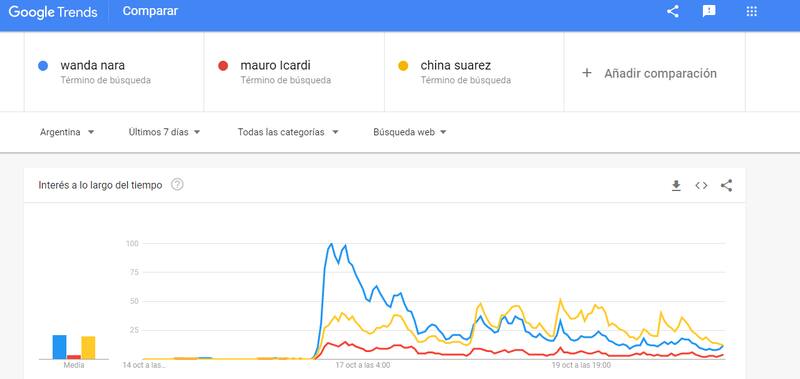 Según se desprende del reporte de Google Trends de los últimos 7 días, los términos Wanda Nara, Mauro Icardi y China Suárez alcanzaron un crecimiento de interés de búsqueda por encima del 100% de su rango habitual.