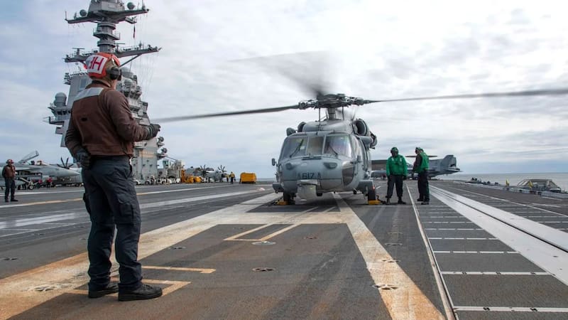 La llegada del portaaviones a aguas caribeñas fue anunciado por el ejército estadounidense en un comunicado de prensa como una operación antidroga, pero ha sido considerado como una táctica de presión contra presidente venezolano Nicolás Maduro. Según el contralmirante Paul Lanzilotta, que dirige el grupo de ataque del portaaviones Ford, explicó que el armamento de guerra busca ”proteger la seguridad y la prosperidad de nuestra nación contra el narcoterrorismo en el hemisferio occidental".