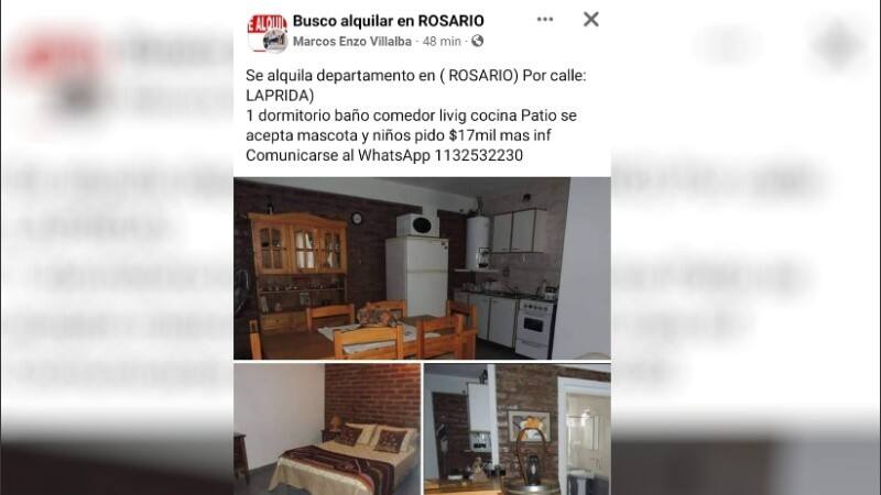 Una rosarina denunció que siete personas tocaron timbre y pidieron conocer uno de los inmuebles que dicen haber visto en Facebook para su alquiler temporario, cuando todas las propiedades ya tienen inquilino. Lo que pudieron establecer quienes viven allí es que un delincuente publicó en la red social fotos truchas de un inmueble con el objetivo de estafar a quienes le depositan por adelantado un mes de garantía.