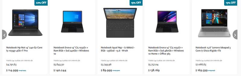 En tanto, la promoción estará vigente este martes y miércoles de abril a través de la tienda online de Banco Nación conocida como TiendaBNA. En el sitio, se venden notebooksHP, Macbook Pro, iPad, Dell, entre otras marcas. En tanto, el modelo más barato cuesta $80.000 mientras que las computadoras Apple son las más caras de la tienda y alcanzan los $430.000.