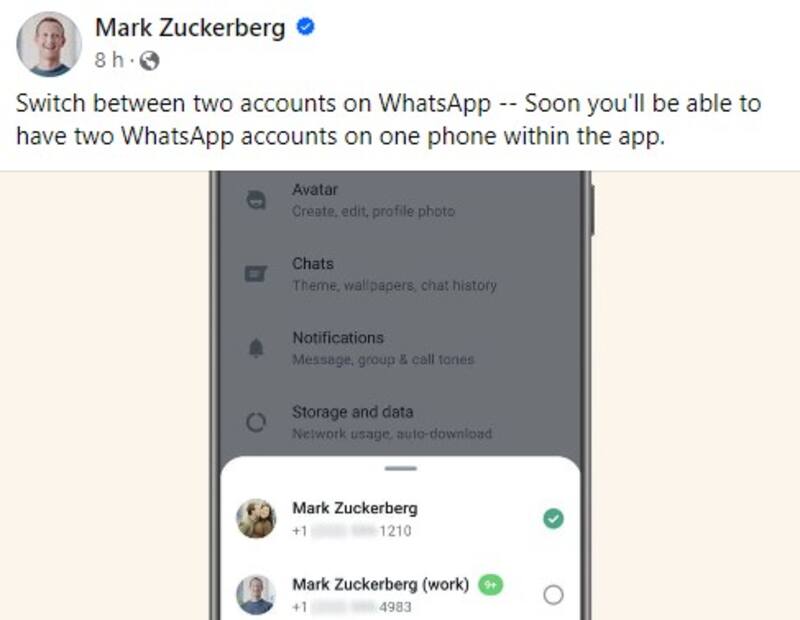 Mark Zuckerberg, CEO de Meta, fue quien confirmó la noticia en su cuenta de Facebook, asegurando que será posible tener más de una cuenta en un mismo teléfono.