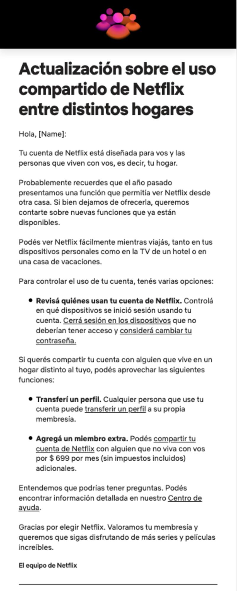 "Podrás seguir viendo Netflix fácilmente cuando viajes o estés fuera de casa", aseguró el gigante del streaming a través de sus redes sociales. Los usuarios fueron notificados de los cambios vía mail.