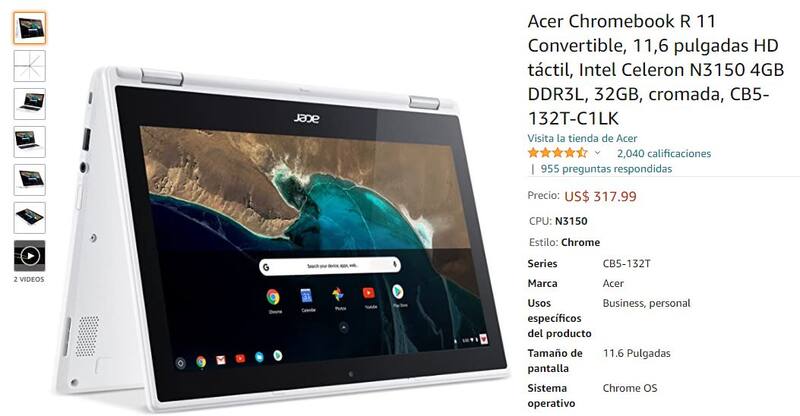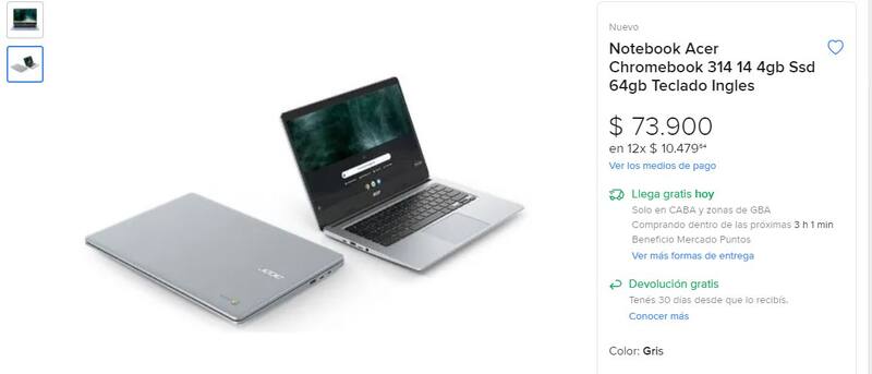 Una chromebook Acer se consigue en MercadoLibre a un precio de alrededor de $73.000 en función del modelo, características y marca.