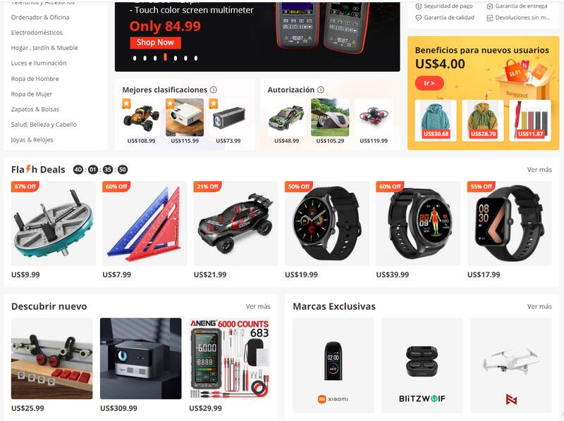 Banggood es de las mejores tiendas online para comprar productos tecnológicos baratos. Si bien el sitio se especializa en tecnología, también venden equipos deportivos, accesorios de moda, joyas y productos de salud.
