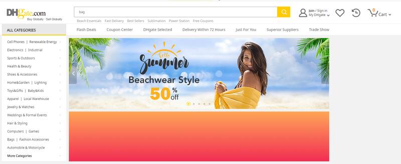 DHgate es el mejor lugar para comprar productos relacionados con el mundo de la moda (aunque también dispone de algunos artículos electrónicos y para el hogar). Si buscas zapatos baratos, trajes de novia, relojes, productos de peluquería y aseo personal, o bolsos, DHgate es una de las mejores opciones en China.