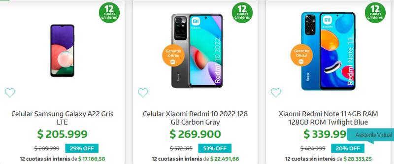 Un ejemplo es el smartphone Xiaomi Redmi 10 que, por un precio de $ 269.900, ofrece una pantalla de 6,5 pulgadas con resolución FHD+, cámara cuádruple de 50 MP, un procesador Helio G88 y batería con capacidad de hasta 5000 mAh.