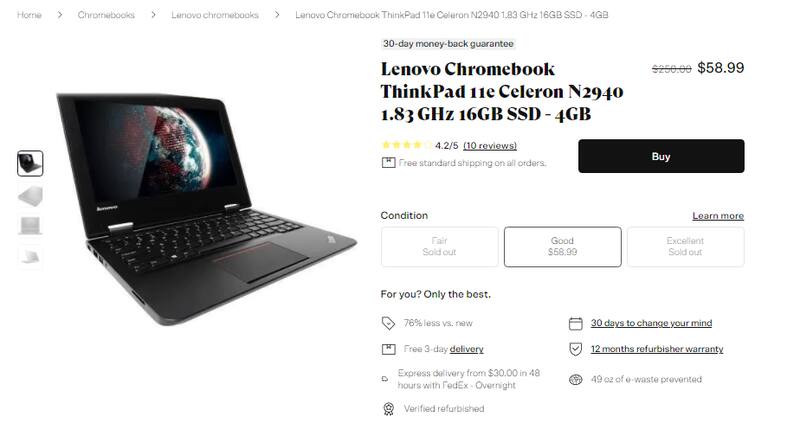 De esta manera, se puede comprar diferentes productos para el estudio a un precio menor. Por ejemplo, una computadora Lenovo Chromebook ThinkPad 11e cuesta US$ 59 en el sitio Back Market. Esta compra con tarjeta de crédito se traduciría a un costo de $ 10.620.