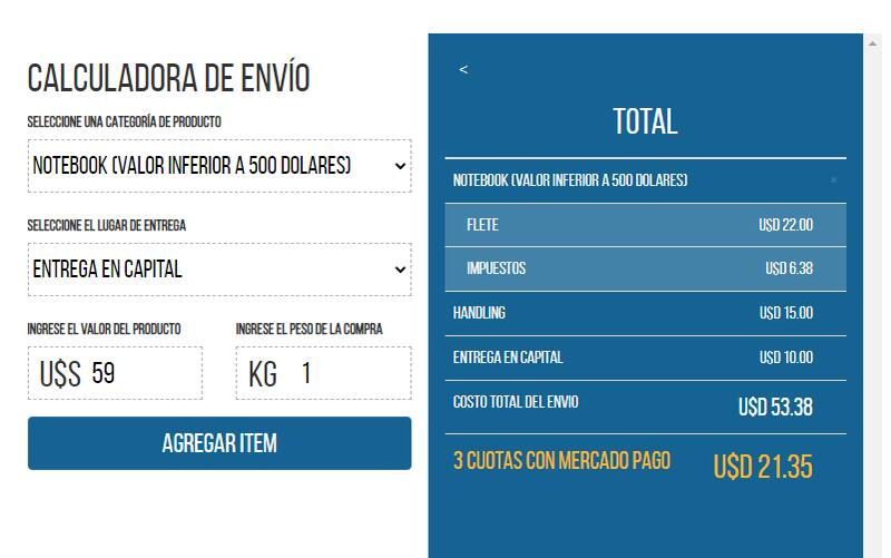 En tanto, el envío de Aerobox cuesta US$ 53,38, unos $ 9.609. El precio final de la notebook sería $ 22.228.