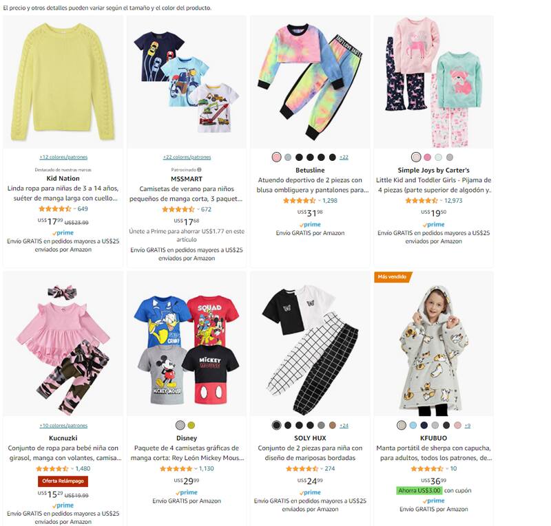 De la misma forma se pueden aprovechar las ofertas de los marketplaces más conocidos como Amazon, que suelen ofrecer descuentos en ropa de niño.