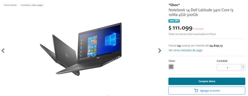 En la tienda del Banco Nación el modelo Dell Latitud 3410 cuesta $111.099 y se consigue haciendo clic en el siguiente enlace.