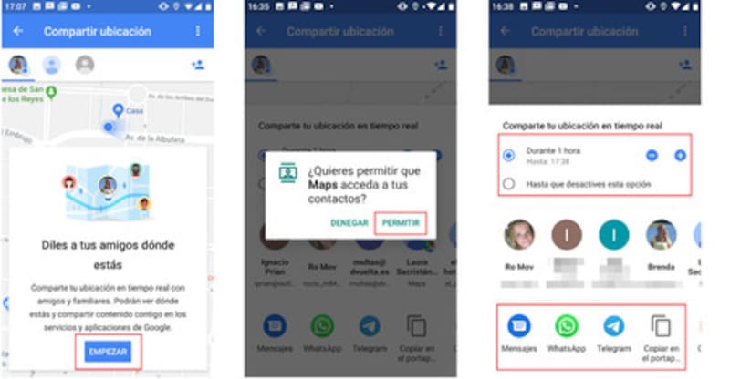 La aplicación permite "compartir la ubicación" o bien recibir la de otra persona, al tiempo que elegir cuánto tiempo y cuándo puede verla.
