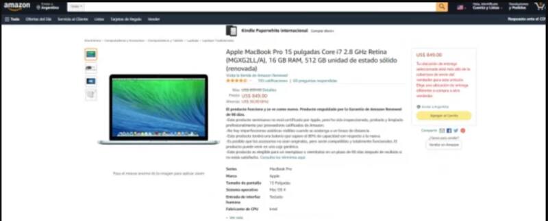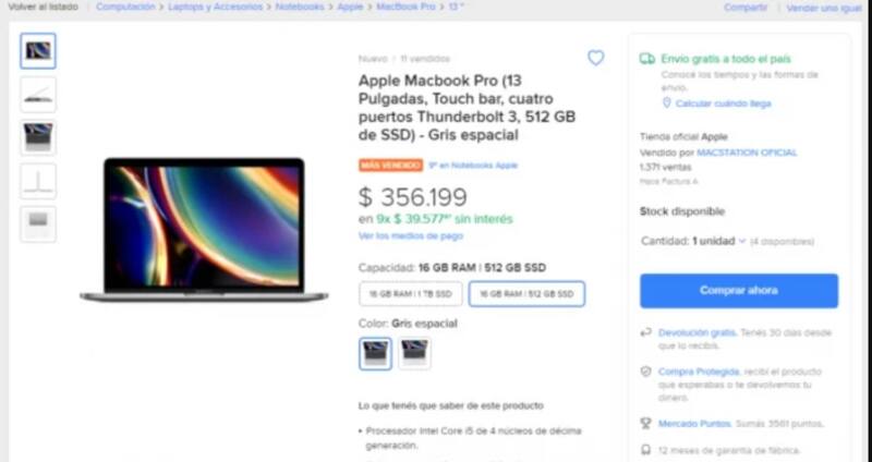 Para el caso de una Macbook, el costo de envío total es de US$ 199. Por lo tanto el precio final es de $158.385, incluyendo impuestos. Para comparación, un modelo anterior del mismo aparato se consigue en Mercado Libre por más del doble.