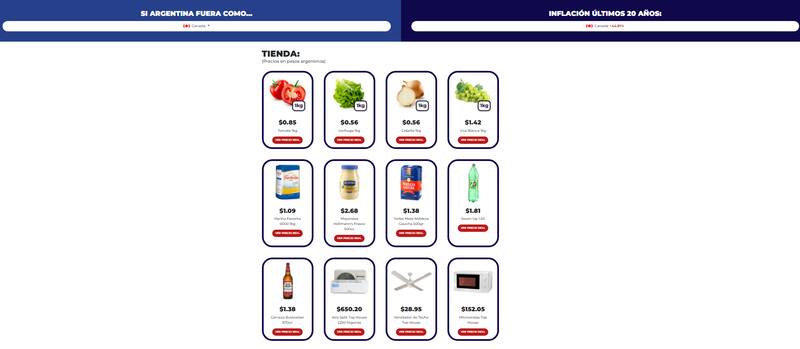 Se trata de un juego de una tienda imaginaria en la que se puede observar cuánto valdrían ciertos productos si la inflación Argentina en los últimos 20 años fuera igual a la de otros países.