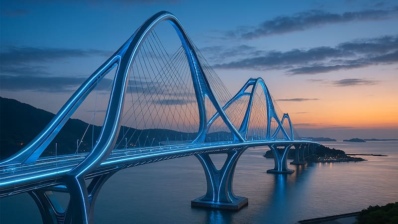 Entre sus logros se encuentra el Puente Akashi Kaikyo, una estructura monumental que ostentó durante 20 años el título de puente colgante más largo del mundo. Con 3.911 metros de longitud total y un vano central de 1.991 metros, esta obra rompió récords y se convirtió en símbolo de innovación.