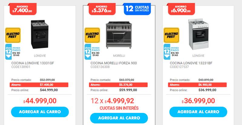 Por otra parte, venden cocinas en 12 cuotas sin interés y hasta $5.000 de ahorro.