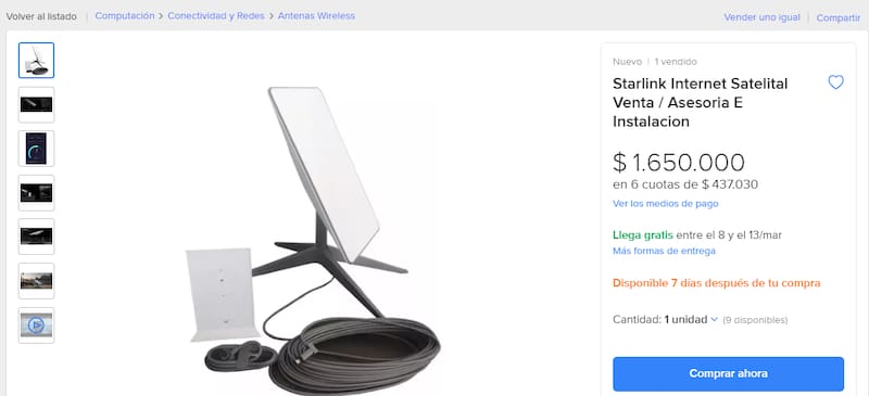 A pesar de ser una medida reciente, la plataforma de e-commerce Mercado Libre ya incorporó la antena de la compañía en su catálogo de productos tecnológicos, incluyendo también el servicio de instalación. A continuación, todos los detalles.