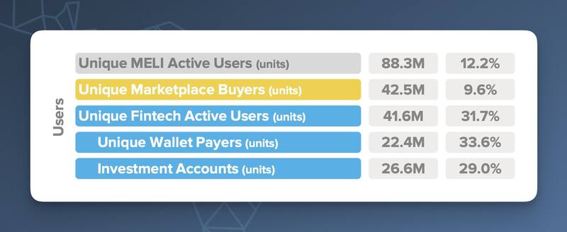 Según el informe, la mayoría de sus usuarios se reparten casi a partes iguales entre las 2 principales líneas de negocio de la empresa: Mercado Libre acumula 42.5 millones de usuarios y Mercado Pago 41.6 millones.