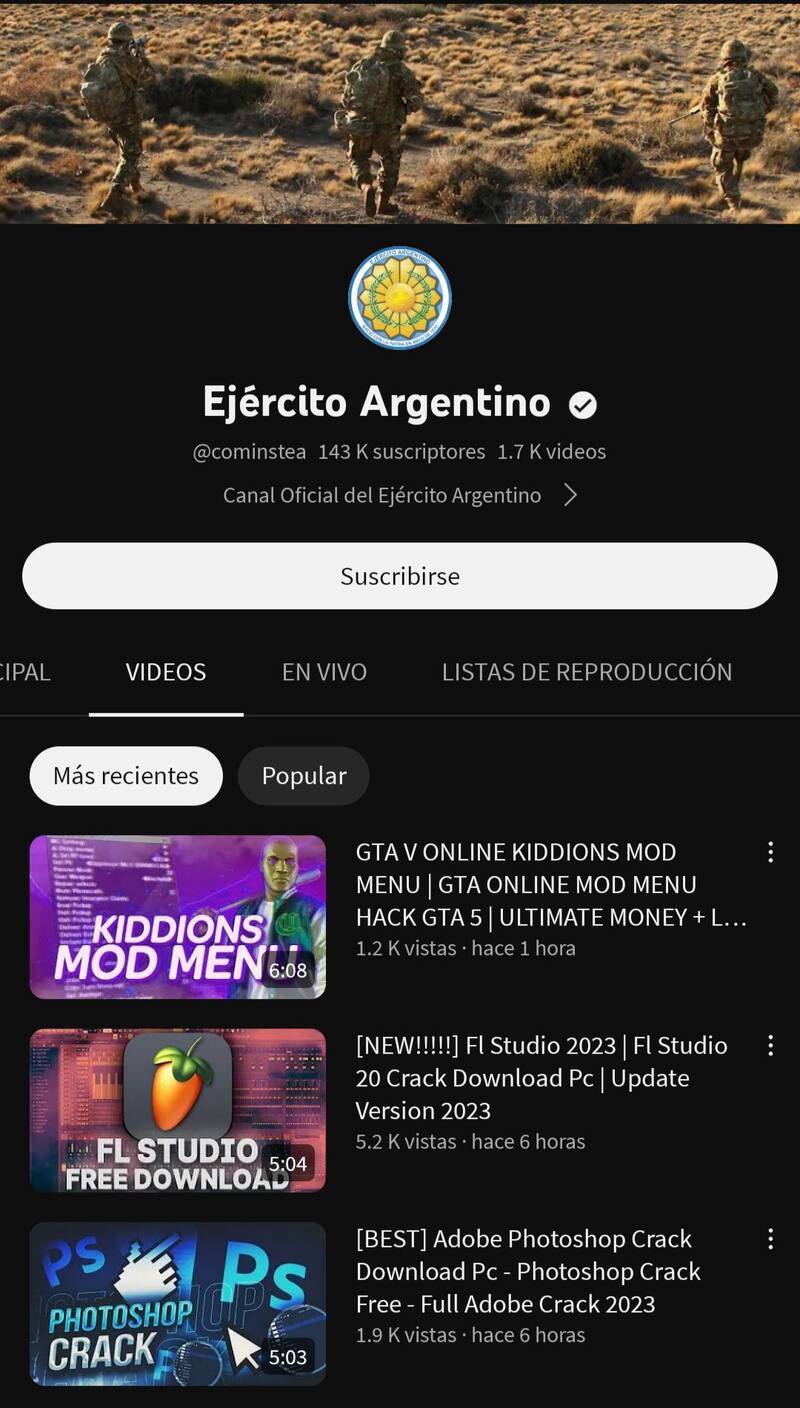 El ataque, en principio, no parece estar dirigido a la página del Ejército específicamente. Dada la naturaleza de los videos subidos, se trata de un tipo de ataque que busca apropiarse de cuentas legítimas para subir contenido monetizable o esparcir malware. En este caso, se subieron videos con supuestos trucos de videojuegos y enlaces para descargar software pirata.