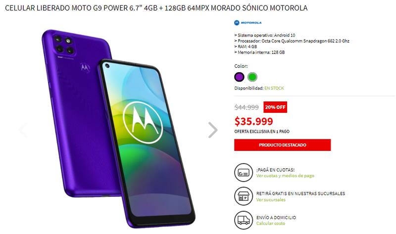 En Mercado Libre, puede conseguirse en 128 GB y 6 GB de RAM, expandible hasta 512 GB con tarjeta MicroSD, a $58.926 con 12% de descuento. Además, el e-commerce ofrece envío gratuito y 12 cuotas en este enlace.