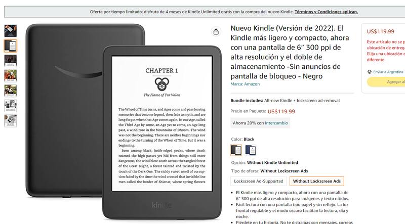 En el exterior los equipos para libros electrónicos se consiguen a un precio más barato. En nuestro país, un eReader de última generación (2022) se consigue por casi $ 50.000.