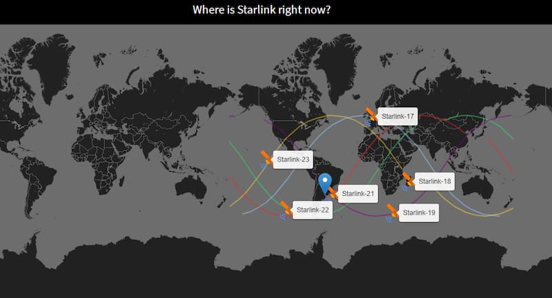 La página "Find Starlink" arroja dónde podrán verse los satélites desde tu ubicación. En el caso de Buenos Aires, por ejemplo, es posible ver un satélite Starlink el próximo 17 de abril a las 6:20 de la mañana a 210 grados del suroeste y 64 grados del noreste. Además, el sitio muestra dónde están ubicados los satélites Starlink en tiempo real y cómo se mueven en la órbita.