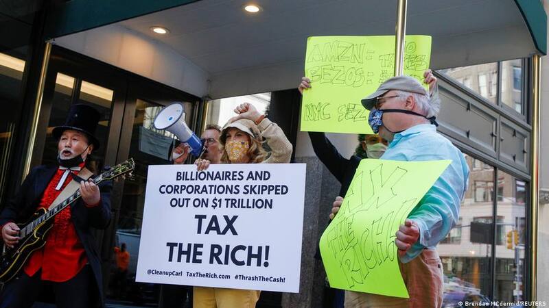 Un grupo de millonarios en Estados Unidos, que abogan por que los ricos paguen más impuestos, participaron en protestas este lunes frente a las casas en Nueva York y Washington de Jeff Bezos, CEO de Amazon. También programaron protestas frente a la casa en Washington del líder de la minoría del Senado, Mitch McConnell, la oficina en Nueva York del líder de la mayoría del Senado, Chuck Schumer, entre otros. Se trata de una curiosa protesta de millonarios contra super ricos, siendo Bezos; el hombre más rico del mundo, el ejemplo más claro.