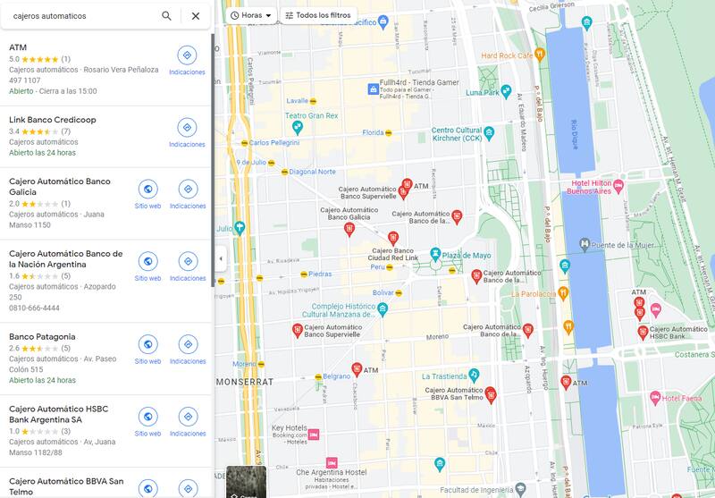 - Inmediatamente, aparecerán -con pines rojos- los cajeros más cercanos.