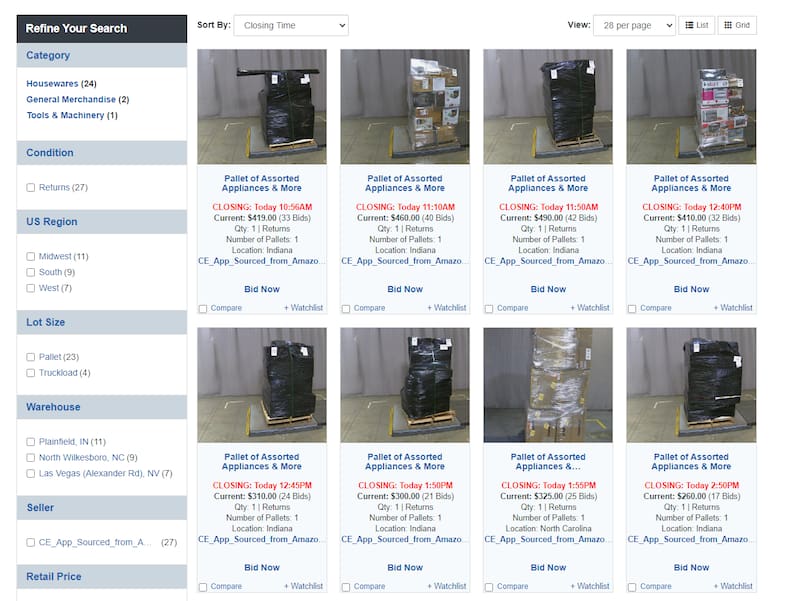 Un vertical de negocios interesante es que Liquidation también remata pallets completos de productos electrónicos de Amazon.