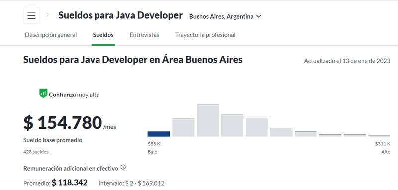 Según el sitio de relevamiento de sueldos Glassdoor, un desarrollador en Java puede ganar $ 154.780 de sueldo promedio.