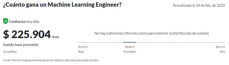 En la Argentina, los ingenieros en aprendizaje automático ganan entre $ 225.000 y $ 411.000 al mes, según la misma fuente.