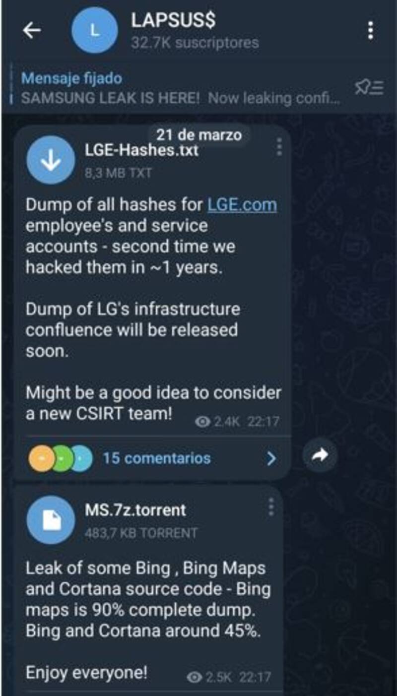 El mensaje de Lapsus$ en el grupo de Telegram indicaba que ese fichero torrent daba acceso al 90% del código de Bing Maps, y a cerca de un 45% del código de Bing y Cortana. Son, en total, 37 GB de información.