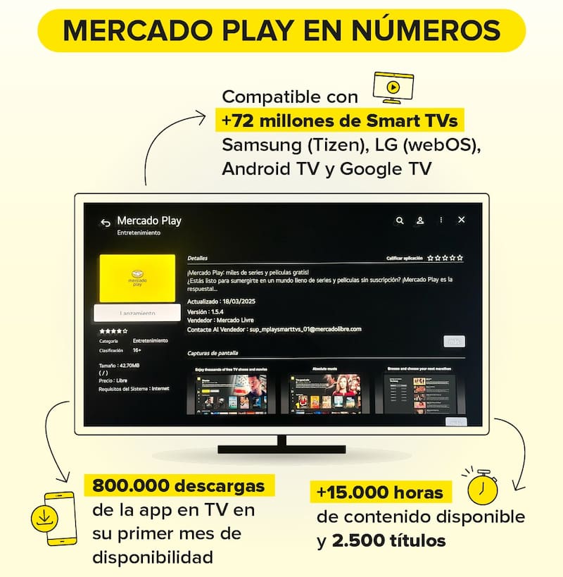 La app de Mercado Play está disponible ahora para televisores Samsung (Tizen), LG (webOS), Android TV y Google TV, sin necesidad de dispositivos extra ni configuraciones complejas.
