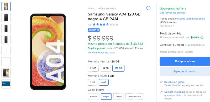 En la plataforma de comercio electrónico, el dispositivo de Samsung puede encontrarse a $ 99.999 y puede pagarse en hasta 3 cuotas de $ 33.333. No incluye costos de envío.