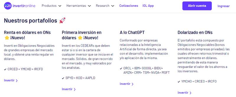 Una de las herramientas financieras que despliega IOL en su sitio web es la de "Portafolios Simples", que les permiten a los argentinos invertir en un rejunte de empresas en un sólo click; con pesos o dólares.