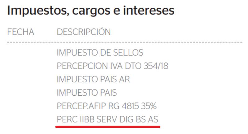 La alícuota es del 2% y ya figura en los resúmenes de la tarjeta como "IIBB PERCEP-BSAS 2,00%" en Visa y en las tarjetas Mastercard aparece como "PERC IIBB SERV DIG BS AS", según informó el sitio de información turística Info Viajera.