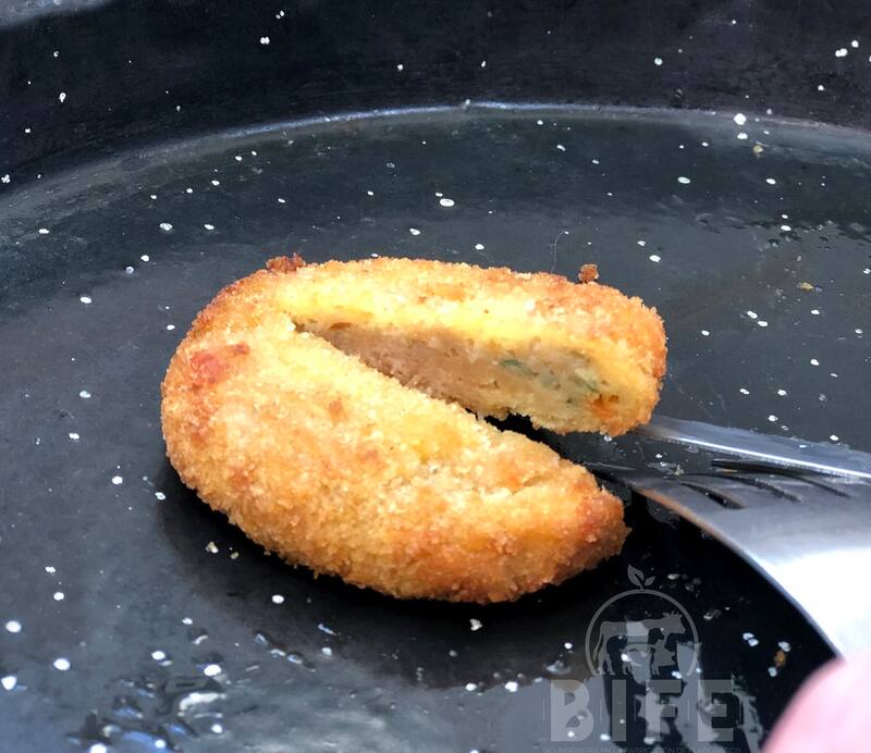 "Al tratarse de una prueba conceptual y como desconocíamos el comportamiento que iba a tener al ser sometida a cocción, decidimos rebozarla, sellarla unos segundos en aceite hirviendo y luego terminar la cocción en el horno", explicó la compañía en un comunicado.