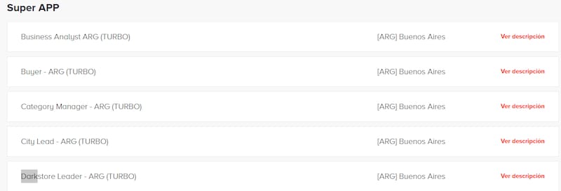 En ambos sitios, podrán encontrarse alrededor de 47 posiciones abiertas y, específicamente, hay cinco dirigidas al vertical de negocios Turbo-Fresh. Estos son: analista de negocios, vendedor, manager de categoría, líder de ciudad y líder de dark store.