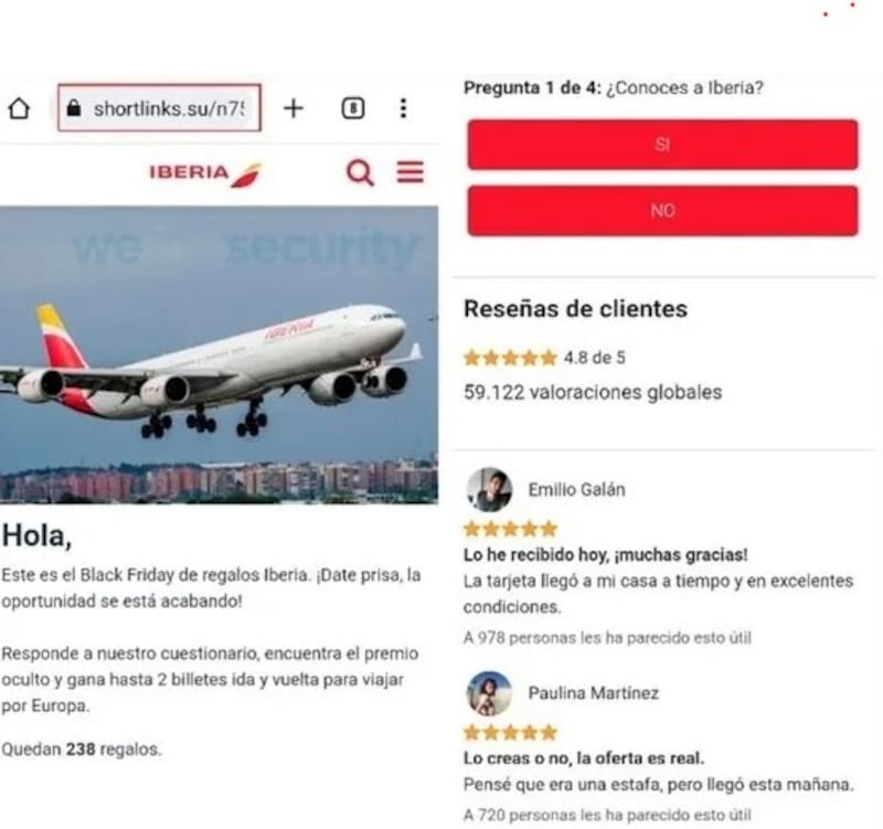 WhatsApp es la aplicación de mensajería preferida a nivel mundial. Ahora, millones de usuarios son víctimas potenciales de una estafa camuflada en una promoción de Iberia que promete vuelos de ida y vuelta por sólo 2,99 euros. El titular del mensaje: "Concurso Black Friday Iberia 2022".